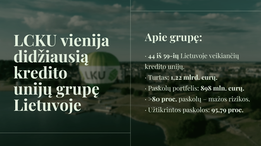 LCKU vienija 44 iš 59-ių šalyje veikiančių kredito unijų, turinčias daugiau nei 100 klientų aptarnavimo vietų visoje Lietuvoje. Grupės turtas sudaro 1,22 mlrd. eurų, paskolų portfelis siekia 898 mln. eurų. LCKU tenka itin svarbus vaidmuo organizuojant, koordinuojant ir prižiūrint didžiąją dalį kredito unijų sektoriaus.
